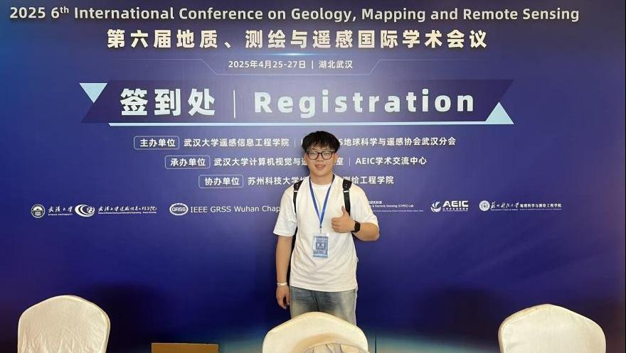 对科研的好奇心与求知欲,让苏琦从大一开始就主动迈出舒适区,积极加入课题组,跟着老师学习科研方法、参与项目实践。作为负责人在大二学年成功申请国家级大学生创新创业训练计划项目,题目为《基于星载SAR的海岸带空间信息监测与演变分析》,他带领团队成员从数据采集、模型构建到成果总结的每一个环节,面对数据处理的繁琐、模型优化的瓶颈,始终以“钉钉子”精神反复试验、不断论证,带领团队攻克一个又一个技术难题,最终项目获评“优秀结题”。这段科研经历不仅让他的科研能力得到了质的提升,更让他收获了丰硕的学术成果:申请计算机软件著作权5项,实用新型专利2 项,以第一作者身份发表SCI二区论文一篇、EI会议论文一篇,并在2025年第六届地质、测绘与遥感国际学术会议完成海报汇报,将山科青年学子的科研思考与专业潜力展现在国际同行面前。